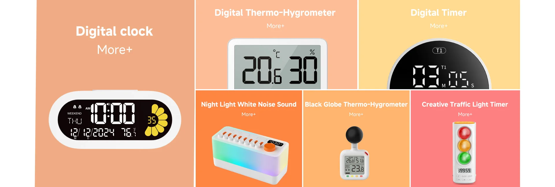ผลิตภัณฑ์หลัก:Clcok ปลุก, จับเวลา, สถานีอากาศ, เครื่องวัดอุณหภูมิเครื่องวัดความชื้น, เครื่องตรวจจับคุณภาพอากาศ