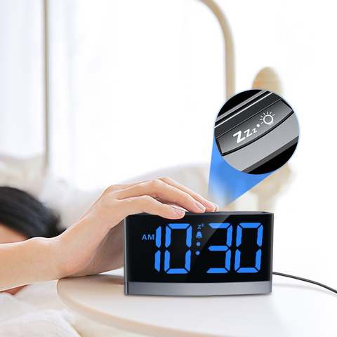 Reloj despertador Digital con proyección ajustable para cabecera, Radio FM, Monitor de temperatura y humedad, atenuador LED, alarma doble, calendario